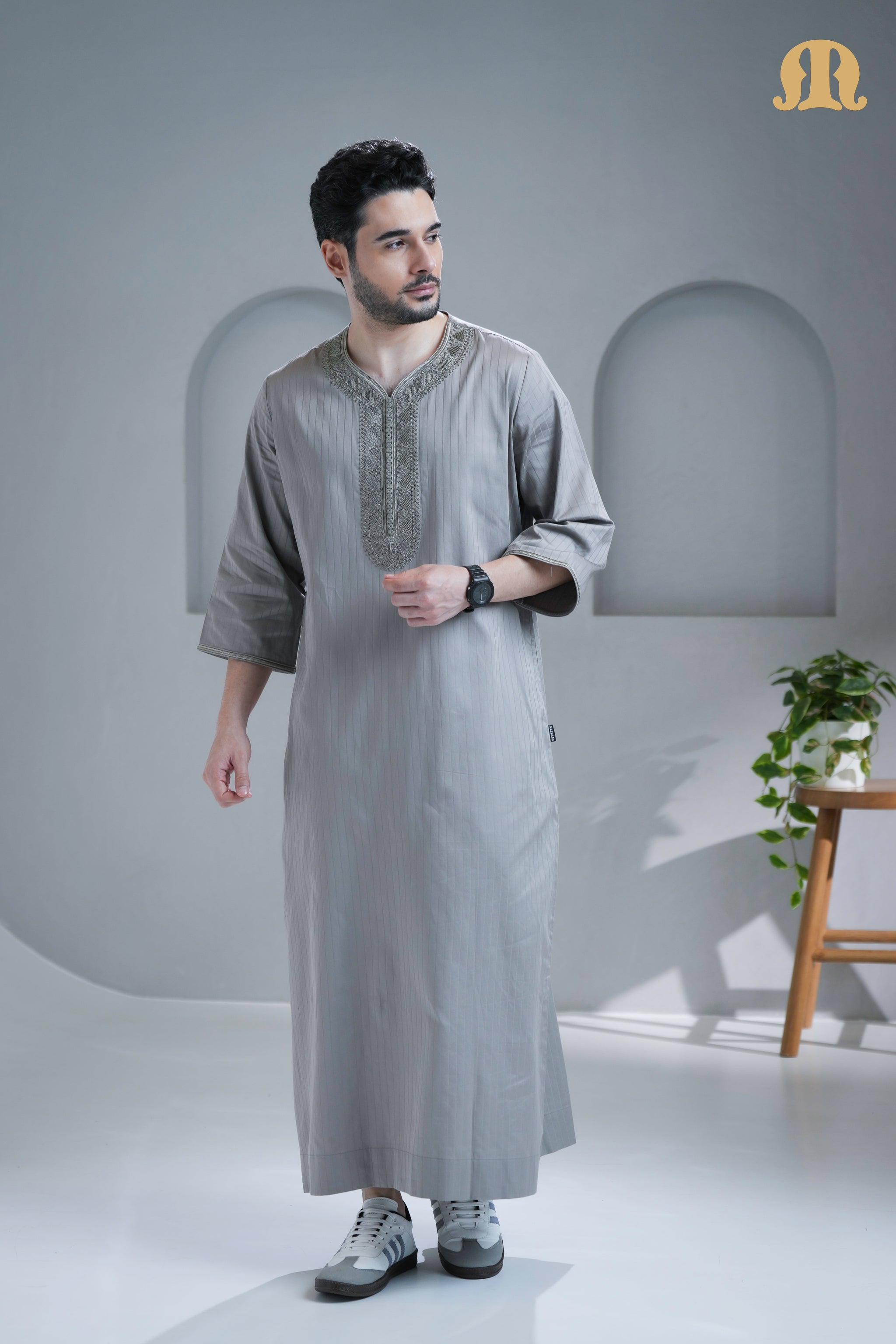 Embody the essence of Moroccan tradition with our majestic Zagora Grey Moroccan Thobe.
