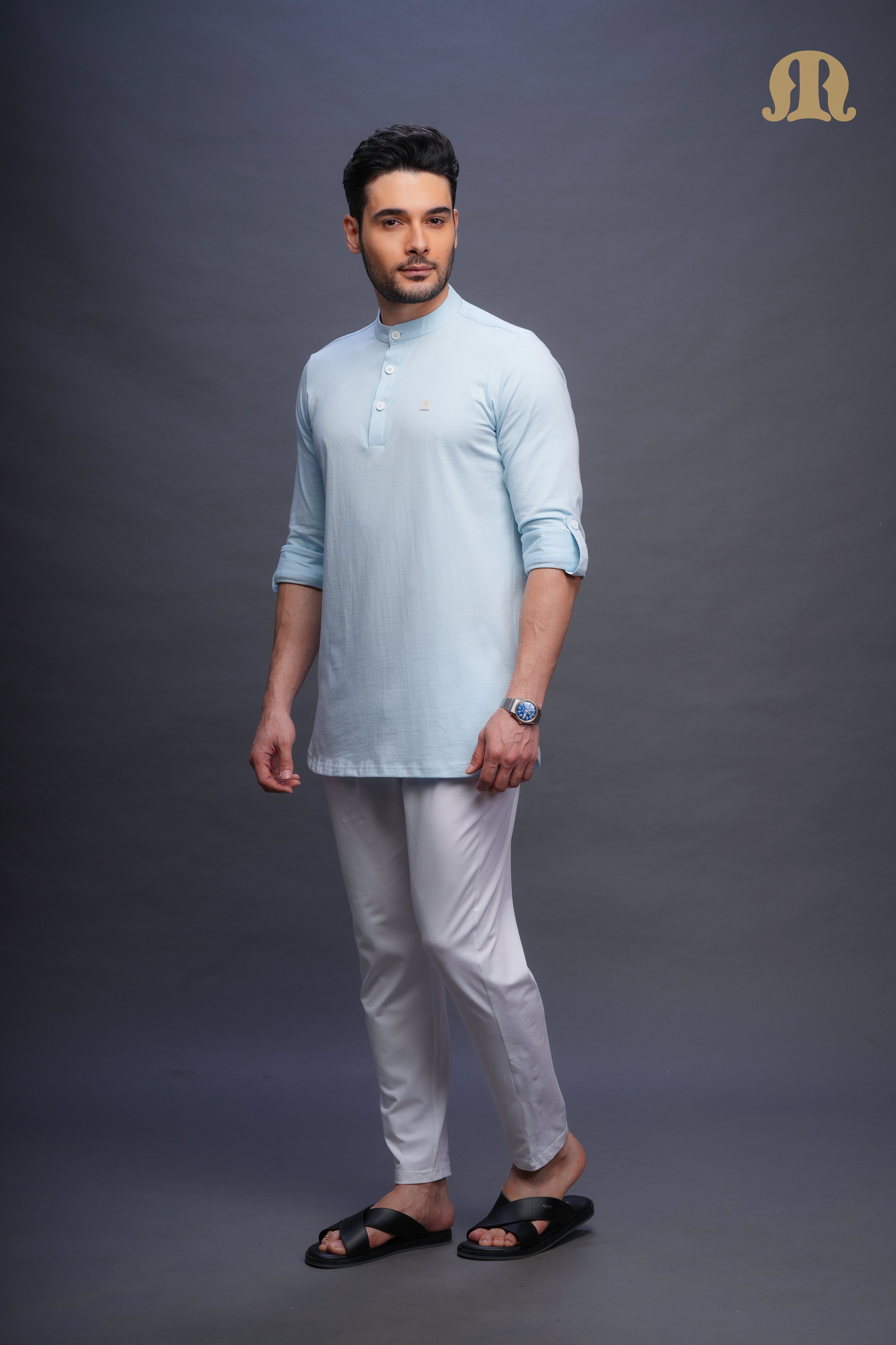 Asticus Knitted Short Kurta Payjama Set Sky Blue Men