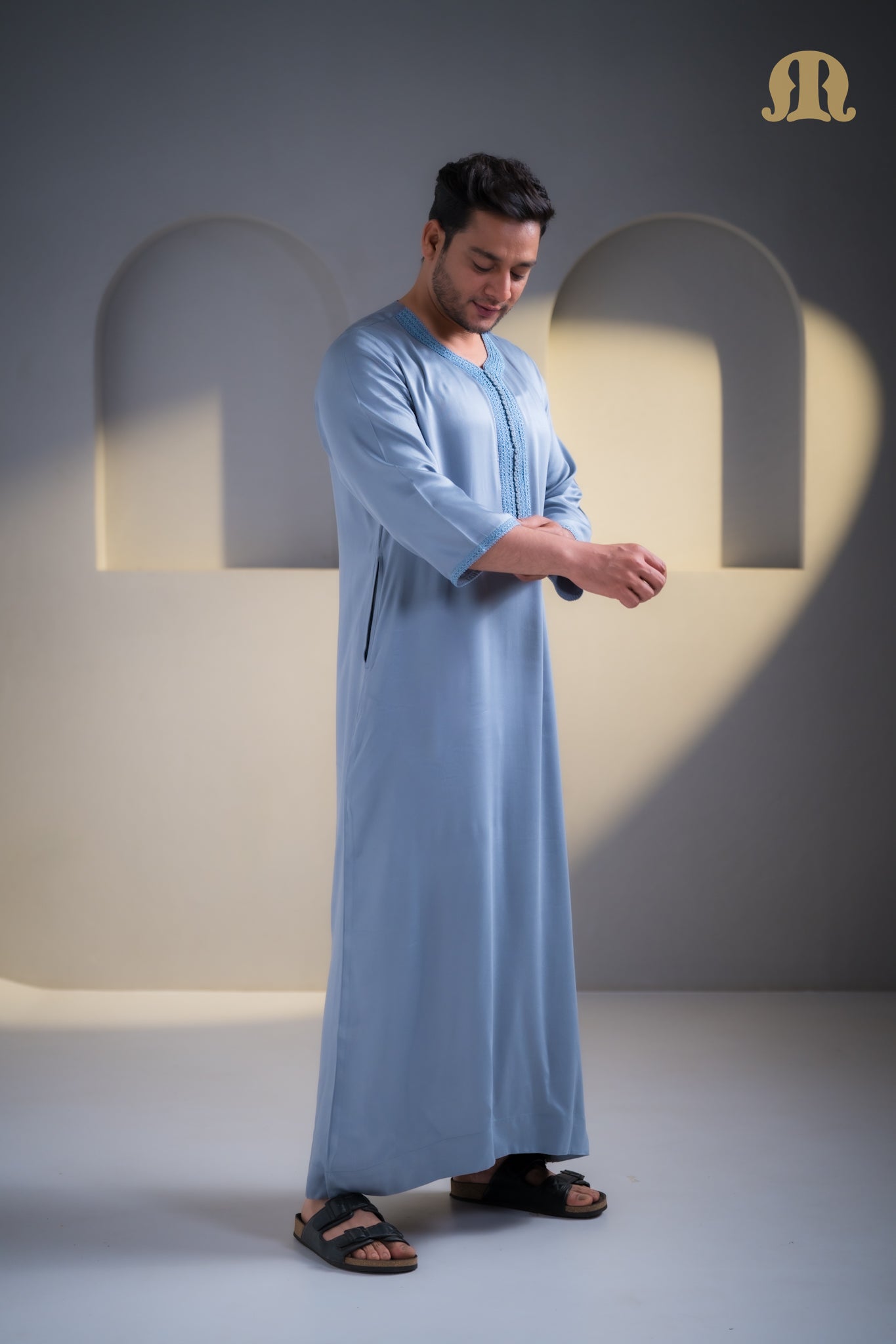 Add a touch of timeless elegance to your collection with the Erie Moroccan Thobe by Mashroo. Its blend of shining fabric, intricate embroidery, and modern design makes it a standout piece that embodies quality and style. Make a statement of elegance and tradition with this exceptional thobe.
