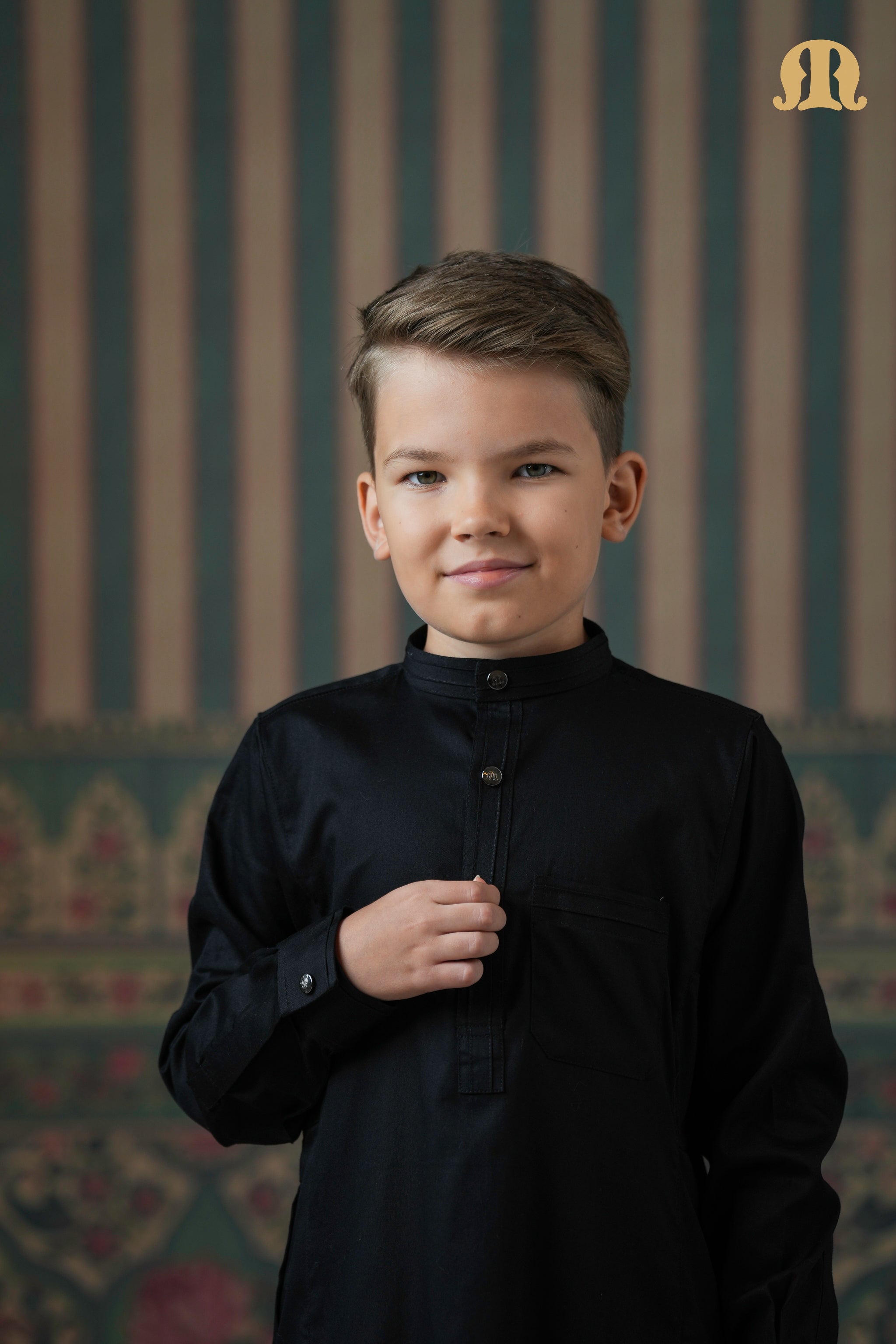 The White Kali Kurta for Kids by Mashroo is made up of Dobby cotton fabric, it sports a mandarin collar and custom-designed logo encrypted buttons. Being dressed in a Mashroo Kurta would become the favourite look of your minors, sooner than you would know.
