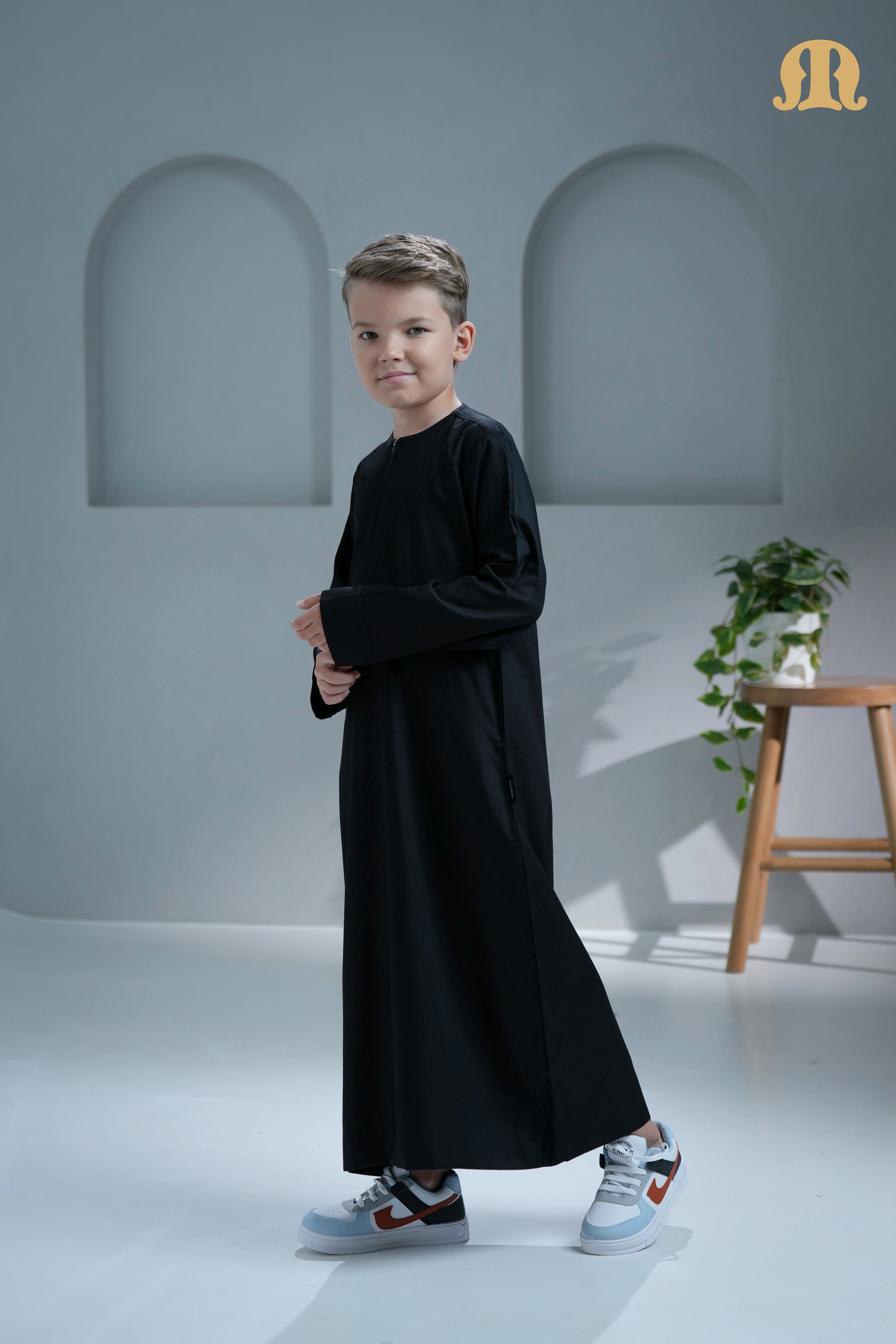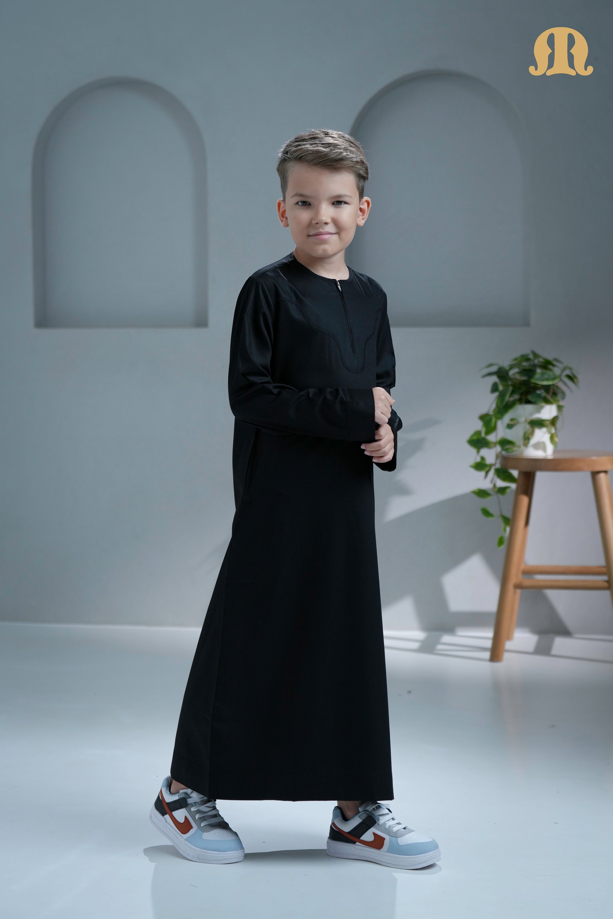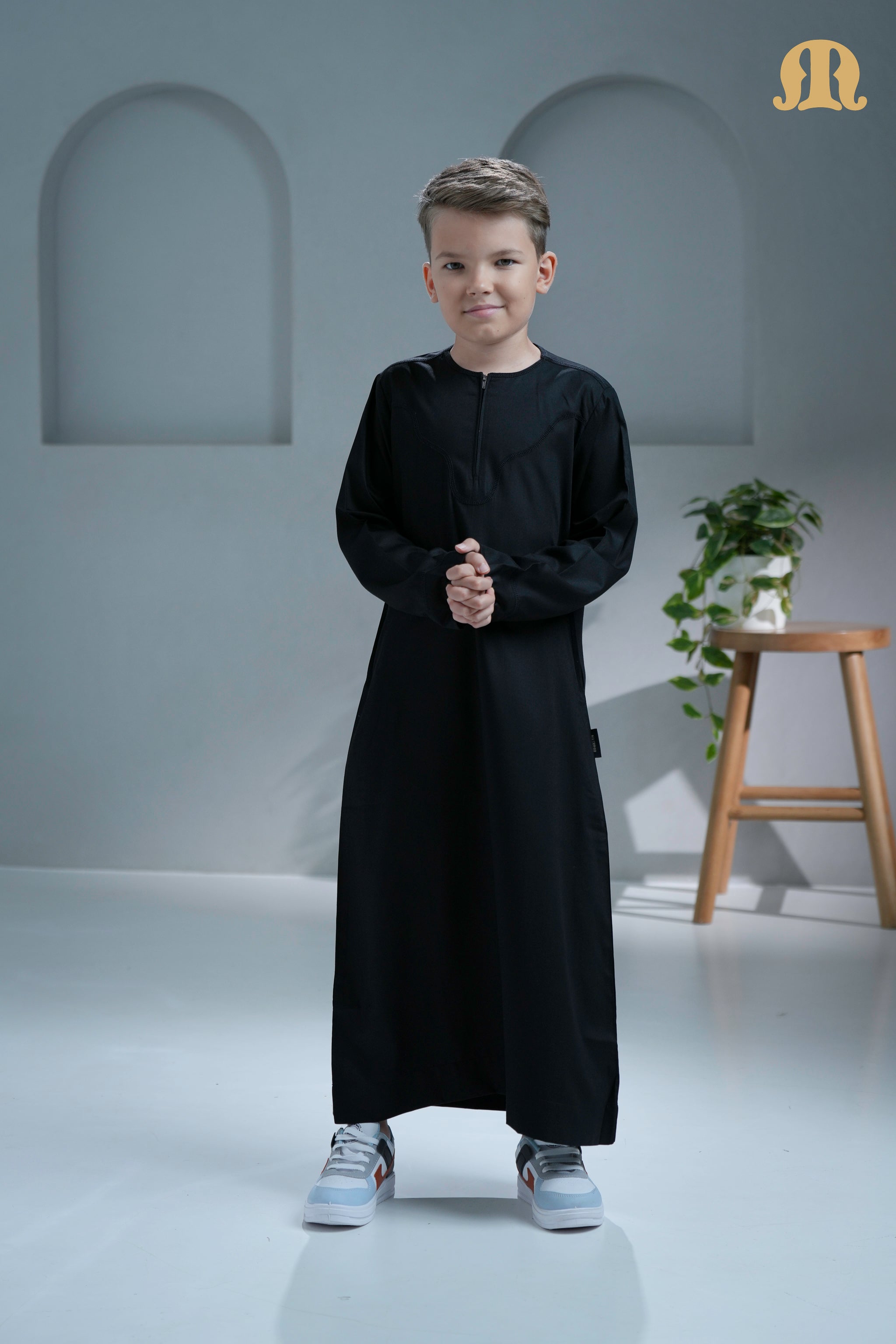 Kurvig Omani Black Thobe for Kids