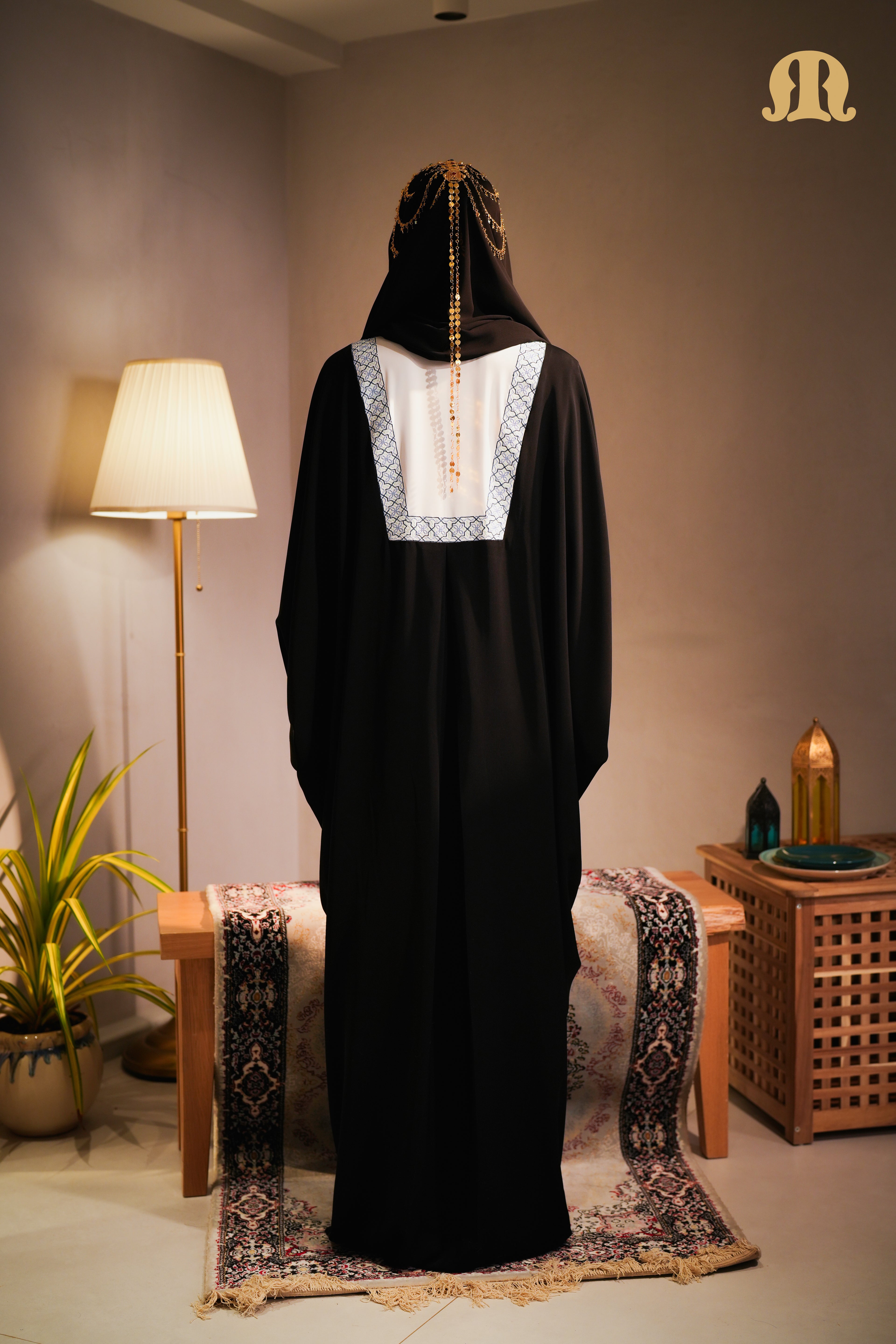 Embody elegance with the Benccerraf Abaya – Sophistication with a playful twist.