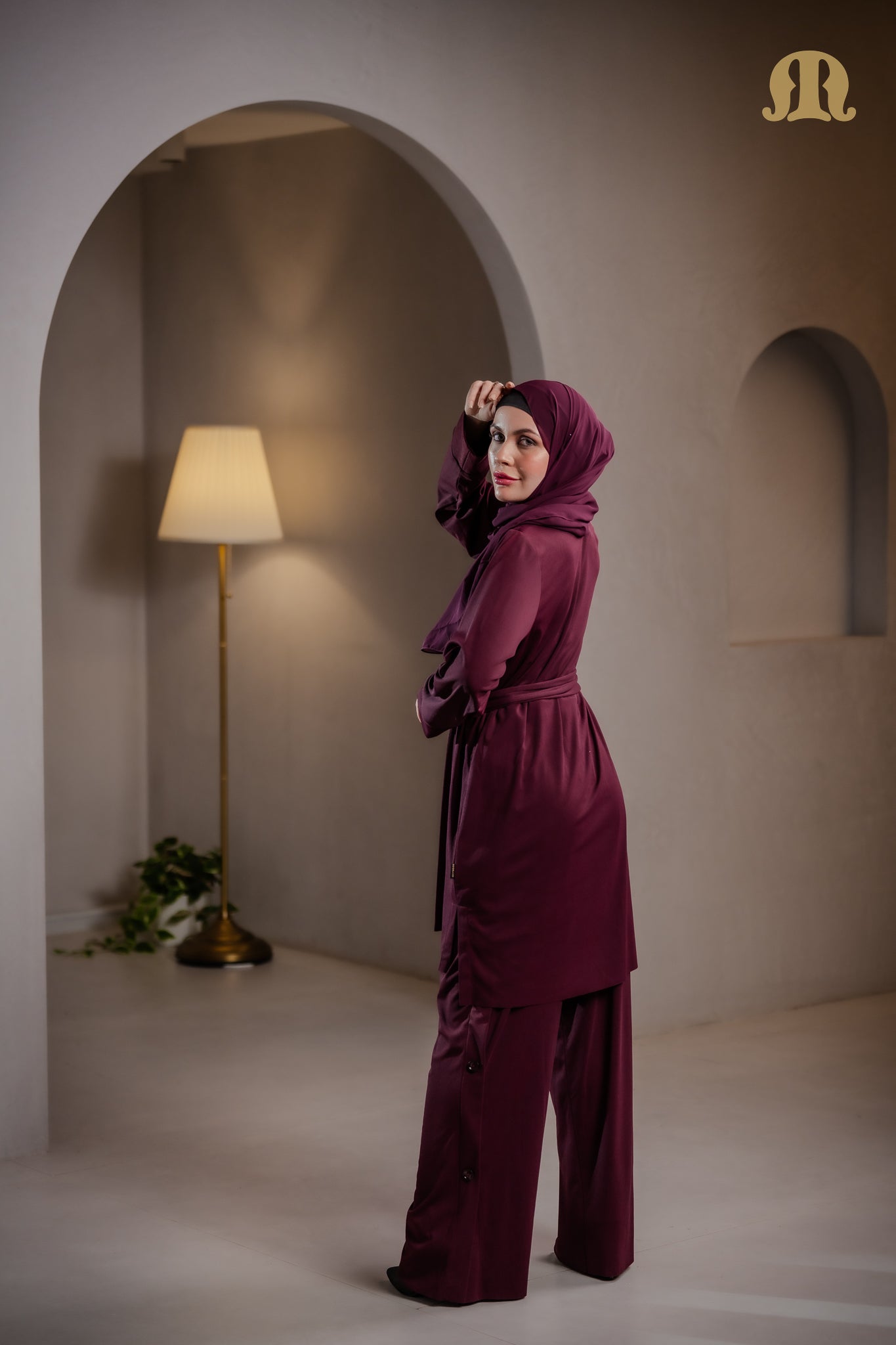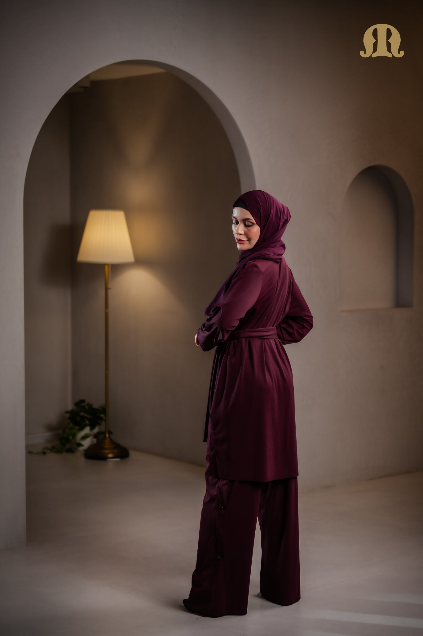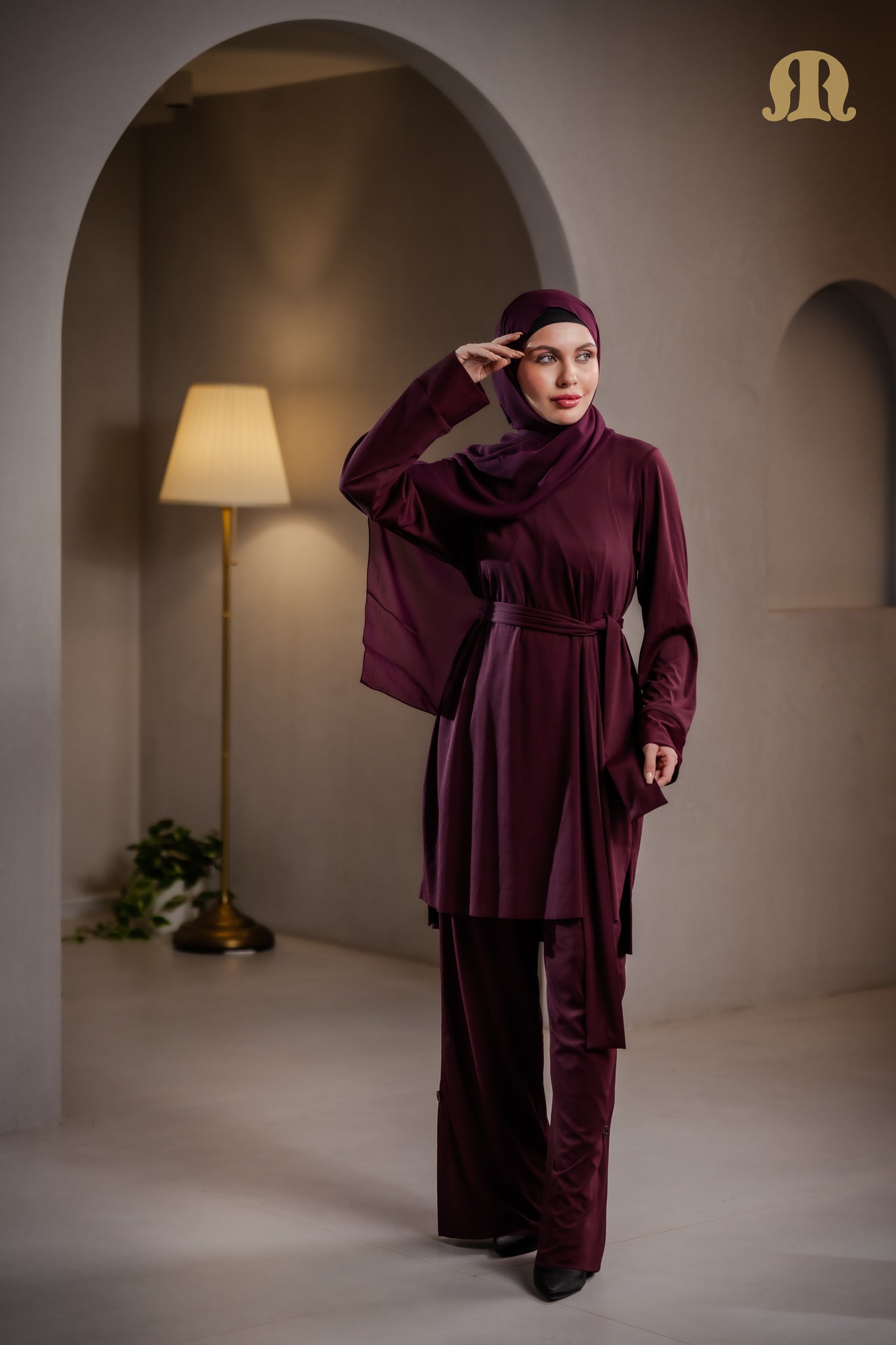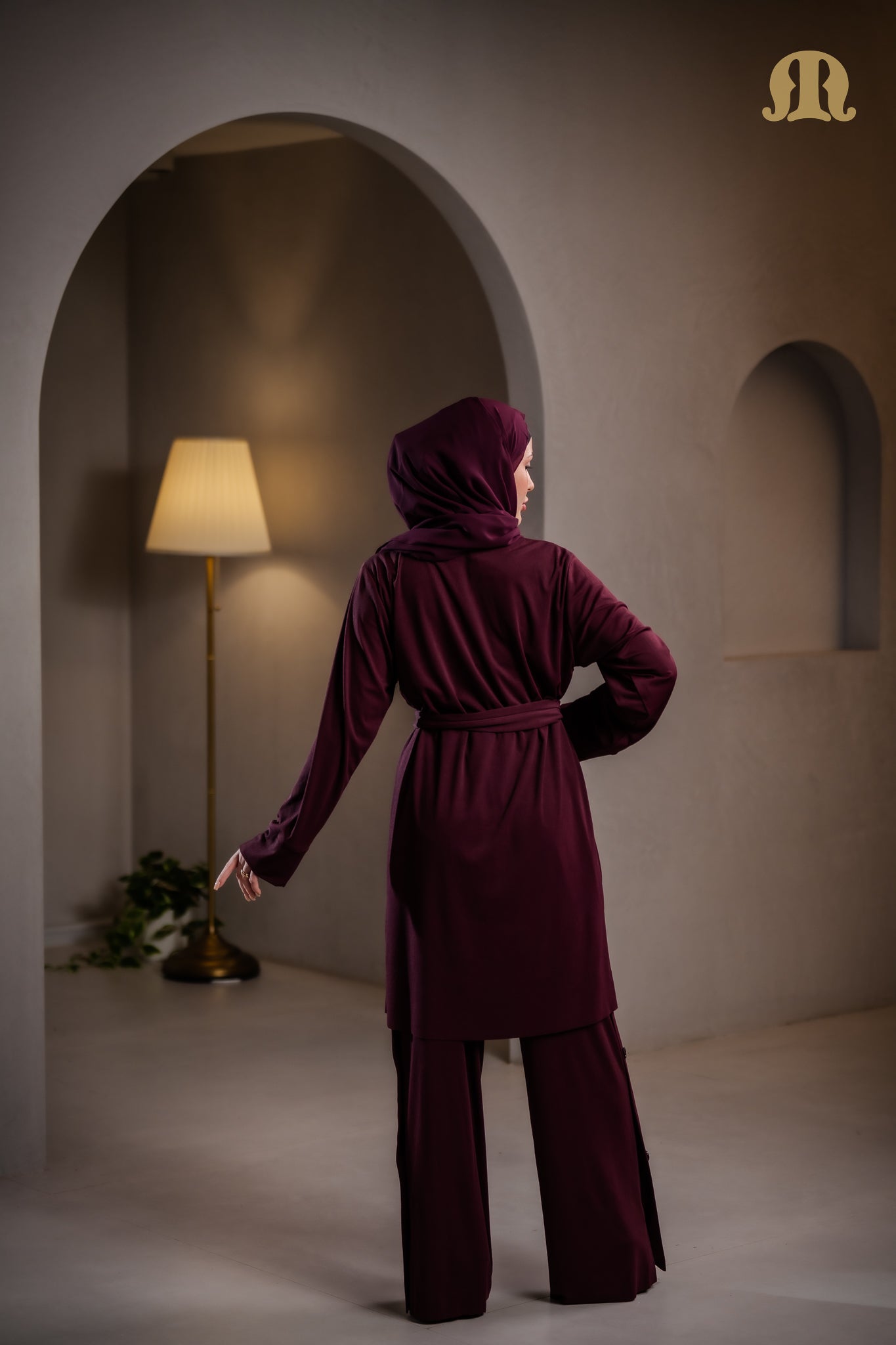 The Kestane Knitted co-ord Set in rich maroon combines warmth with elegance. This cozy ensemble is perfect for layering, offering a chic look ideal for both casual outings and relaxed evenings.