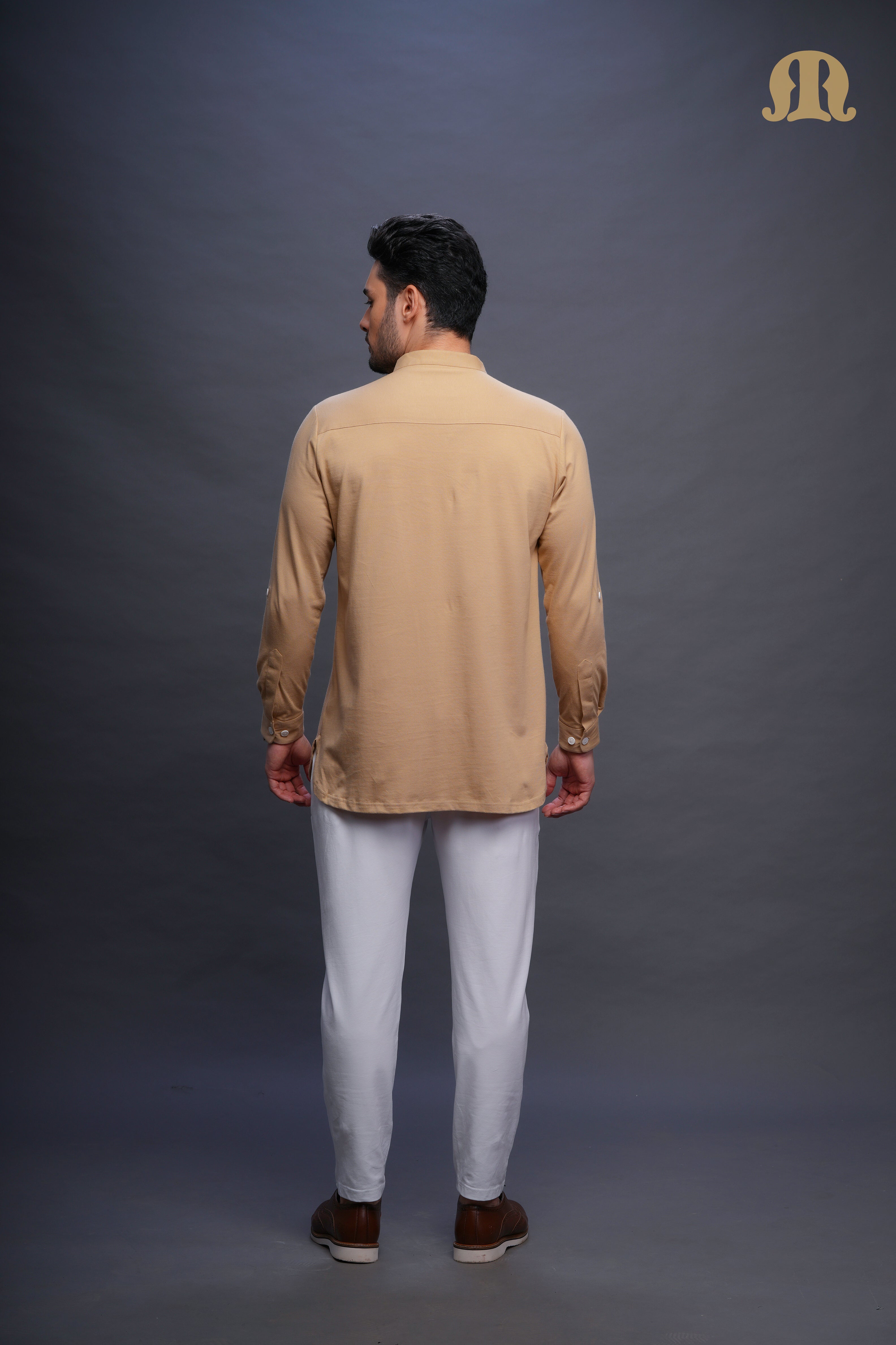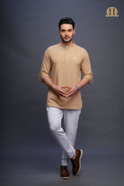 Asticus Knitted Short Kurta Payjama Set Beige Men