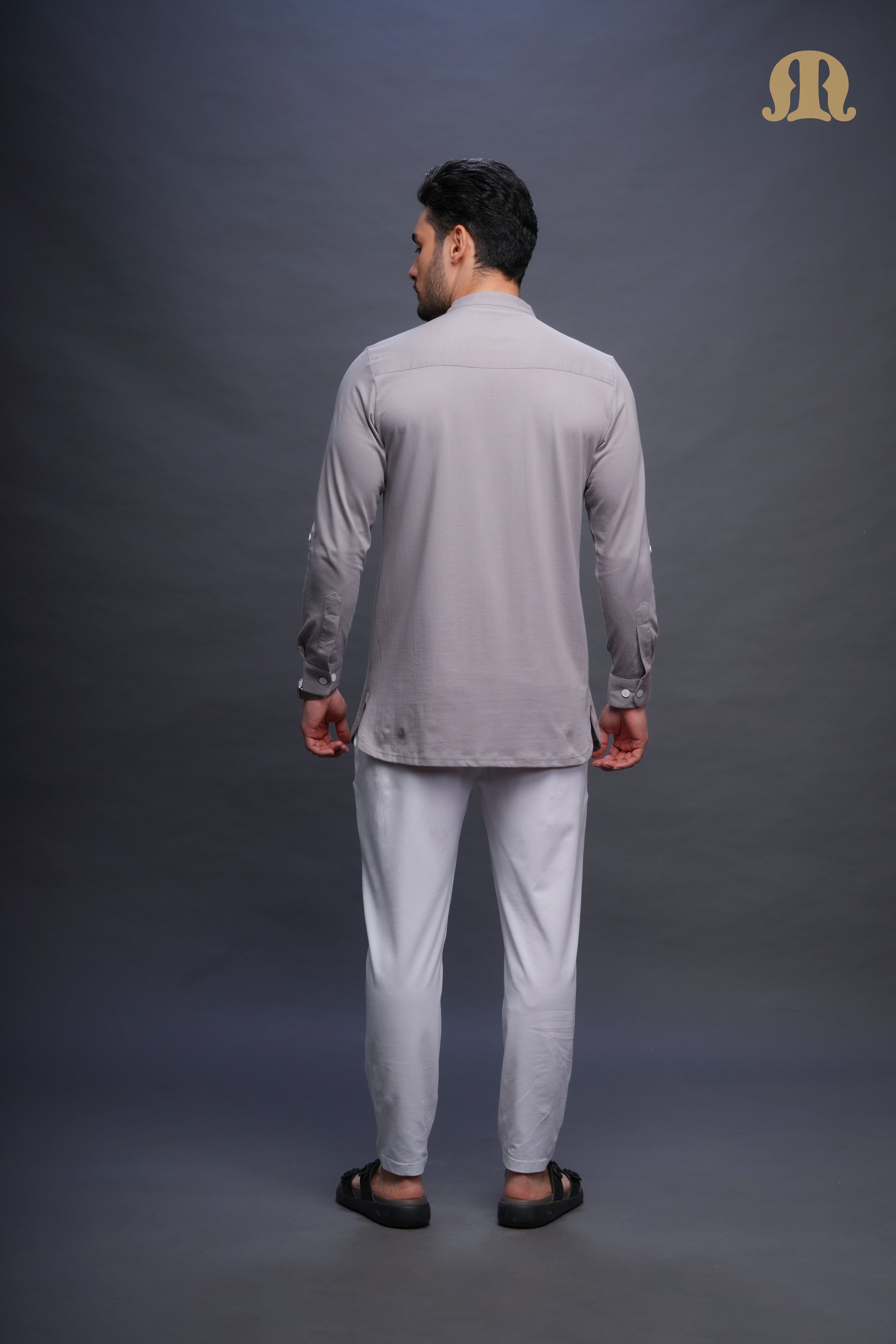 Stay comfortable and stylish with our Asticus Knitted Short Kurta Set, expertly crafted from soft cotton elastic fabric. This versatile set includes a short kurta and Mashroo Elastic Pant (trouser) for ultimate comfort , perfect for daily wear, lounging, or running errands.