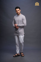 Asticus Knitted Short Kurta Set for Men - Cotton Elastic