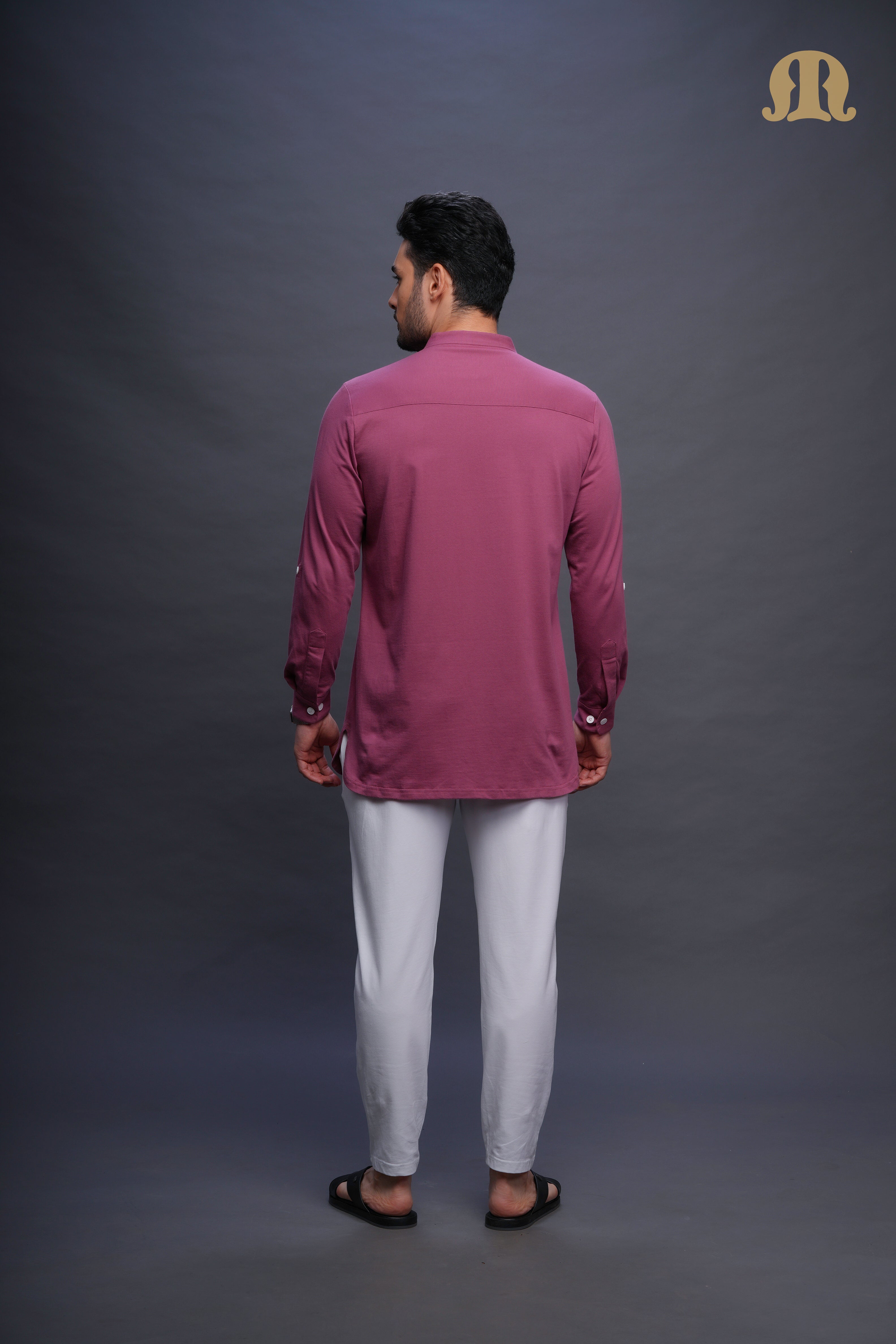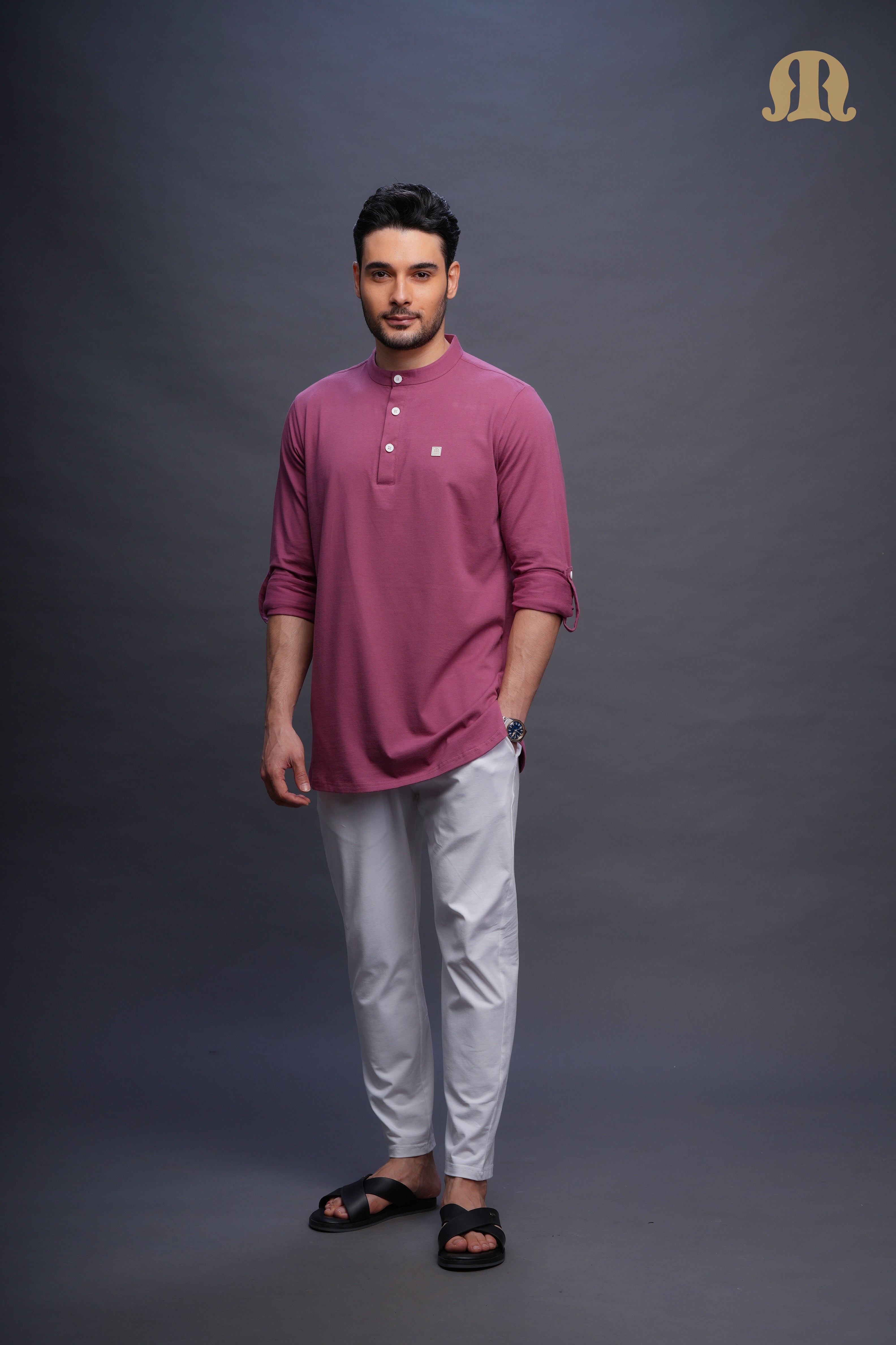 Asticus Knitted Short Kurta Payjama Set Pink Men