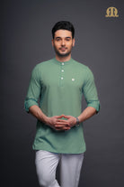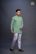 Asticus Knitted Short Kurta Payjama Set Green Men