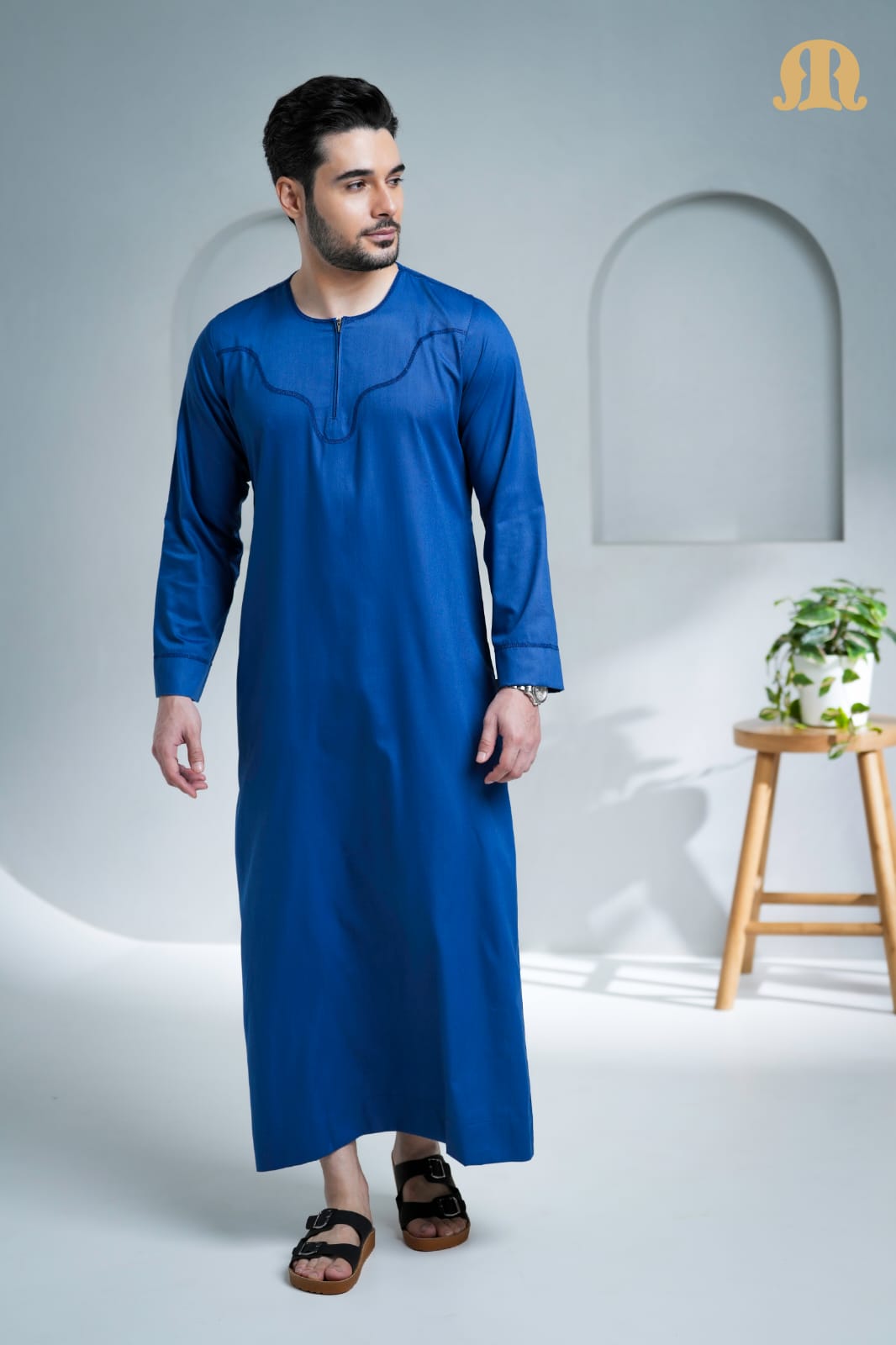 Whether worn for special occasions or as a statement piece in your daily attire, our Omani-style Thobe embodies the perfect harmony of tradition and modern comfort. Elevate your wardrobe with this unique and culturally rich garment that celebrates the timeless charm of Omani fashion.