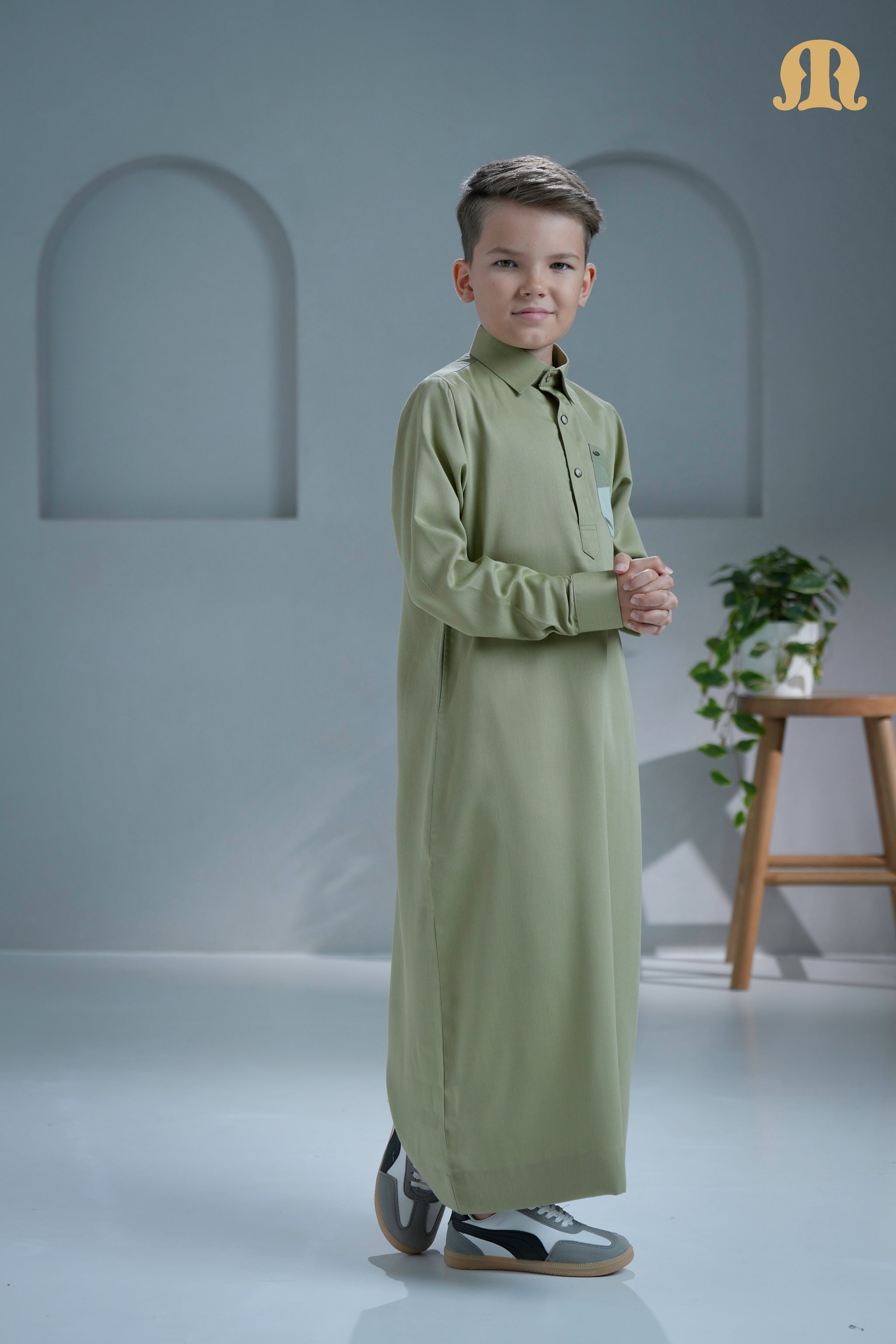 Elevate your traditional style with our Logi L Green Thobe, expertly crafted from a durable poly cotton fabric blend. This unique thobe features: