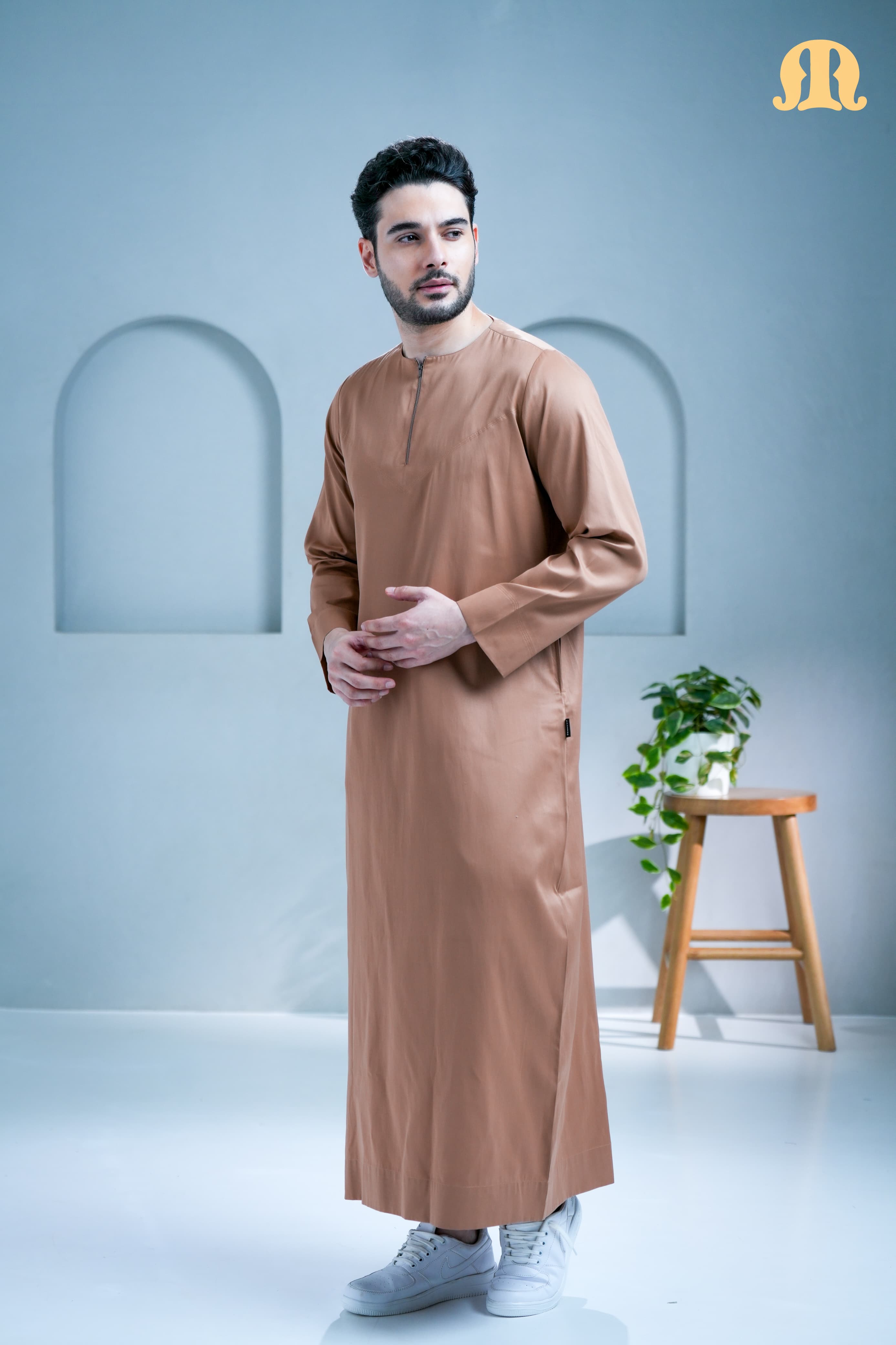 Add a touch of Omani tradition to your wardrobe with this elegant thobe!