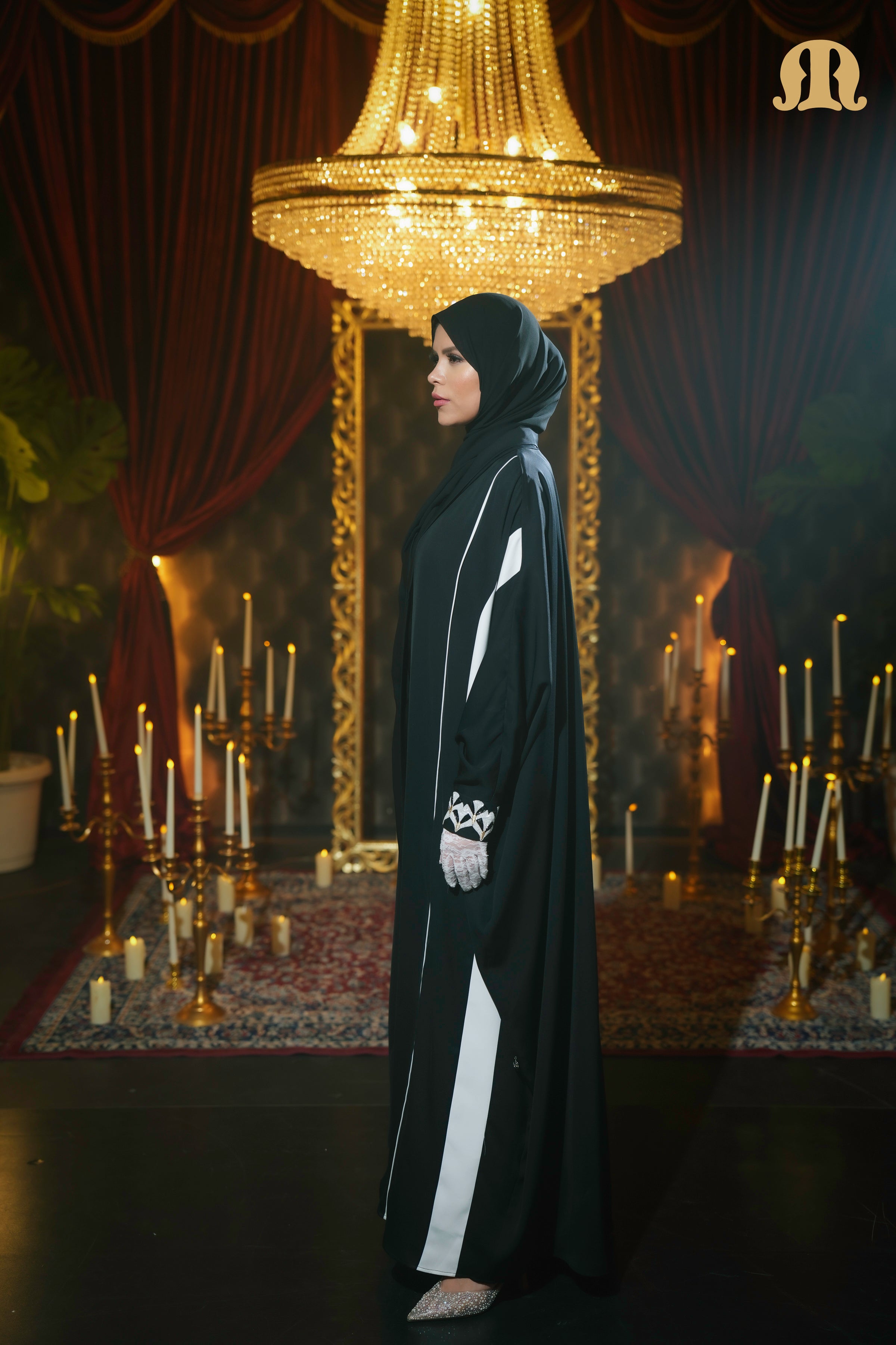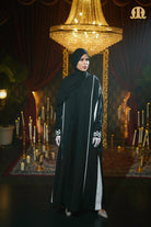 Make a stunning statement with the Luxe Onyx Kaftan, where timeless elegance meets contemporary design. This exclusive black and white abaya is crafted for the woman who appreciates luxury modest fashion with artistic flair.