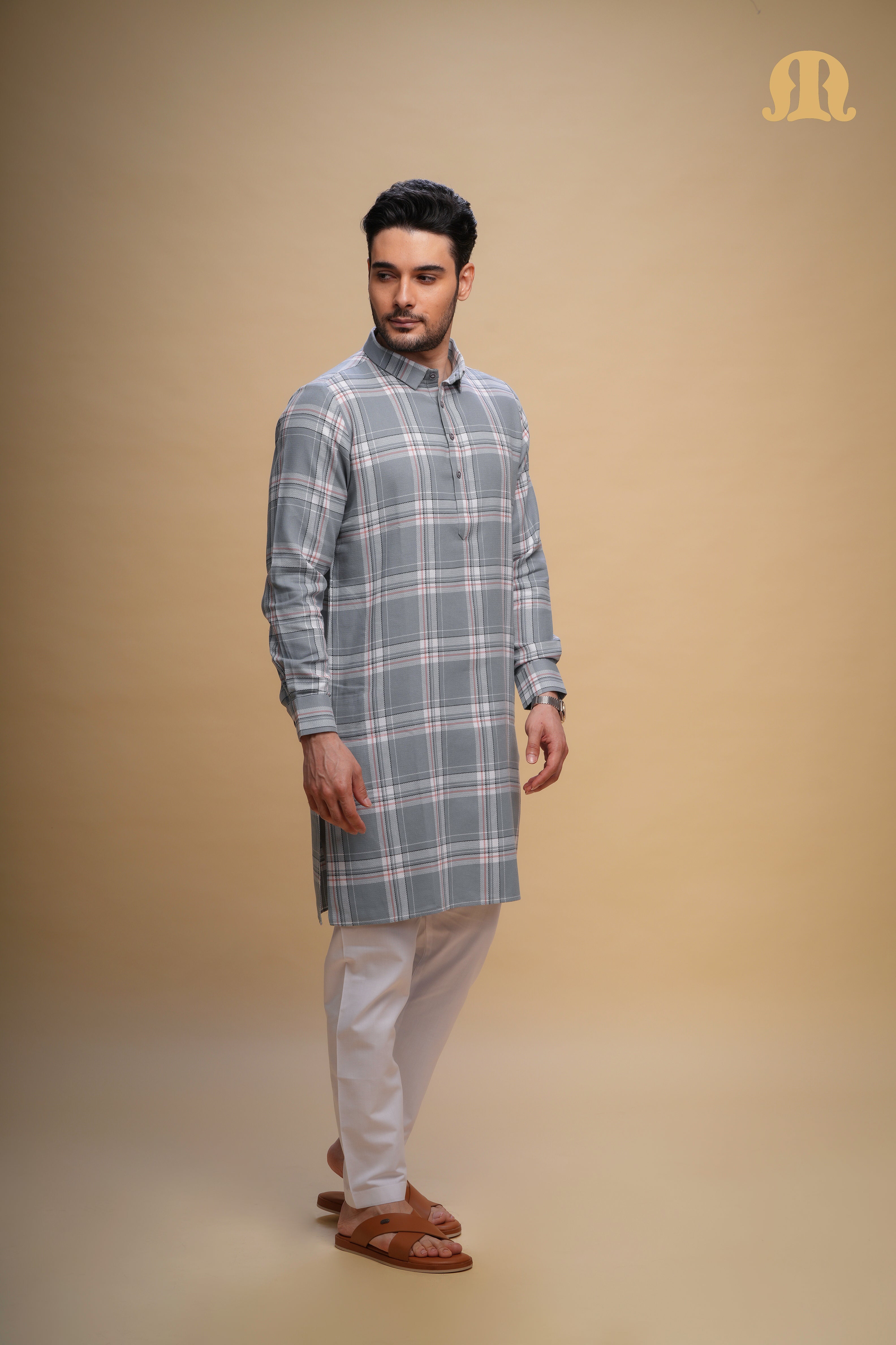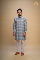 Add a touch of classic sophistication to your wardrobe with our Oxen Checks Kurta Men. Crafted from high-quality cotton, this stylish kurta features an elegant check pattern that's perfect for formal and casual occasions.