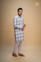 Add a touch of classic sophistication to your wardrobe with our Oxen Checks Kurta Men. Crafted from high-quality cotton, this stylish kurta features an elegant check pattern that's perfect for formal and casual occasions.