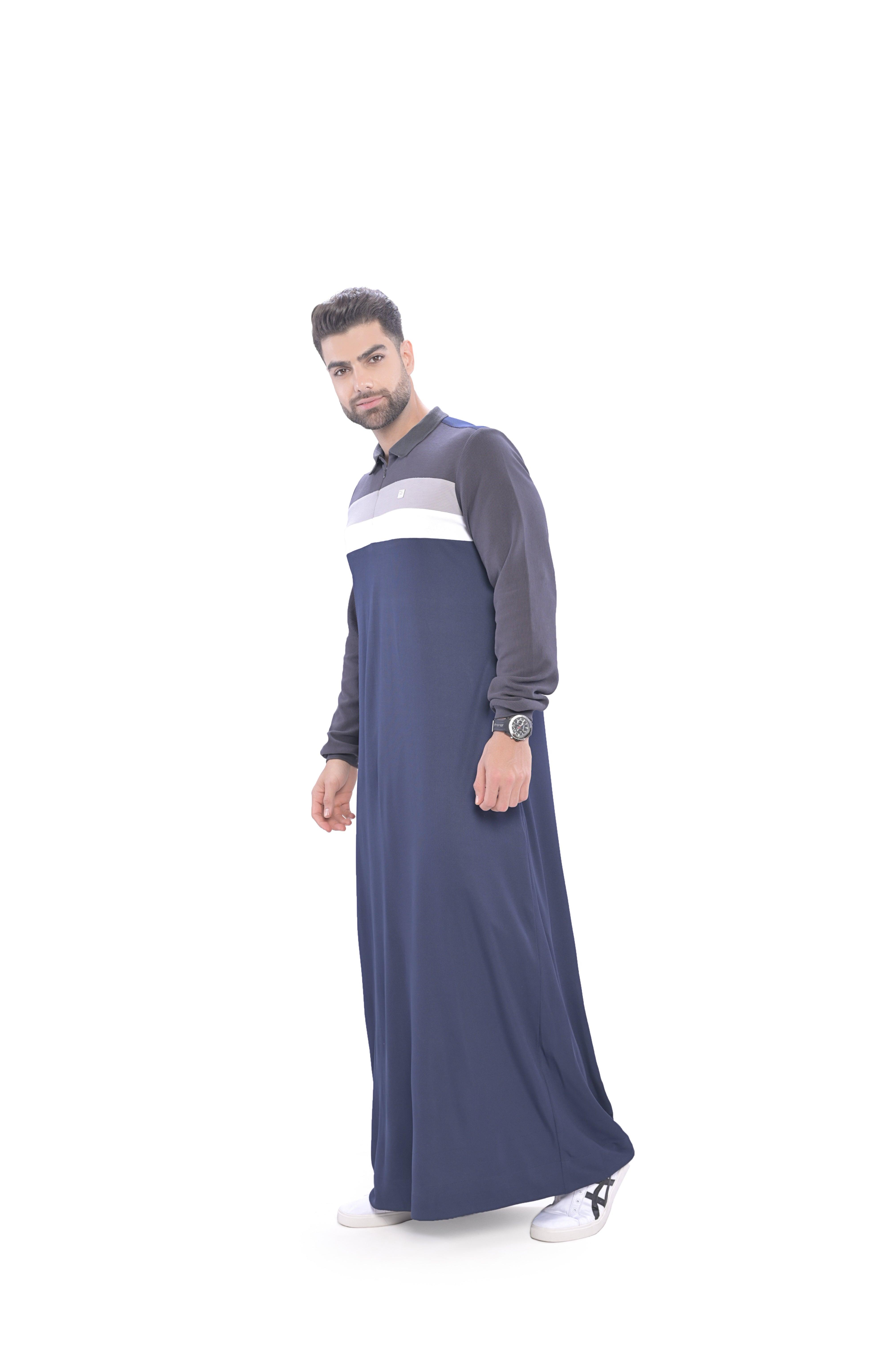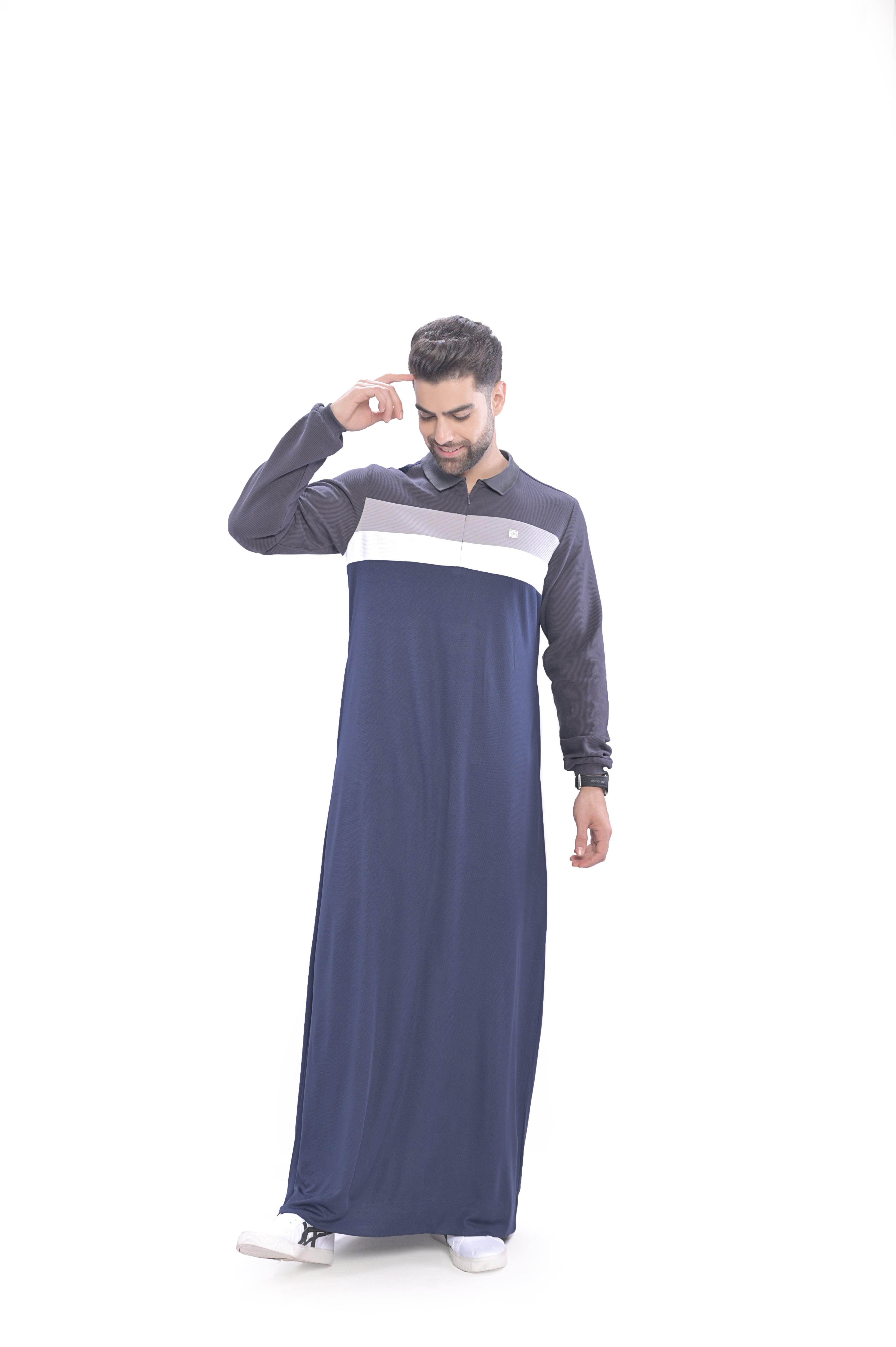 Introducing the 'Royal Blue Tertius' Thobe – a pinnacle of sophistication and contemporary style. Crafted from premium heavy gauge knitted fabric, this garment redefines elegance and comfort, setting a new standard in modern modest fashion.
