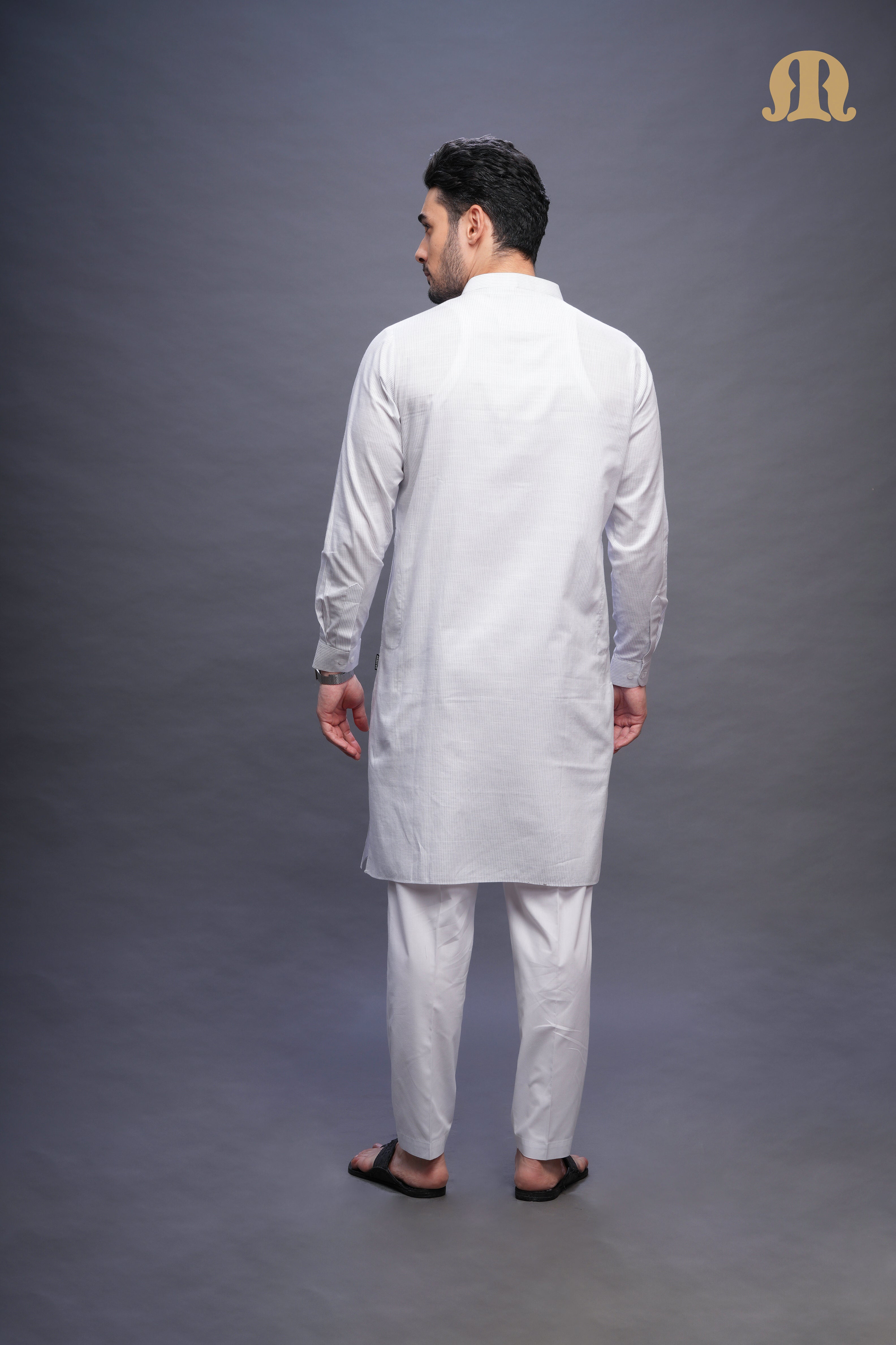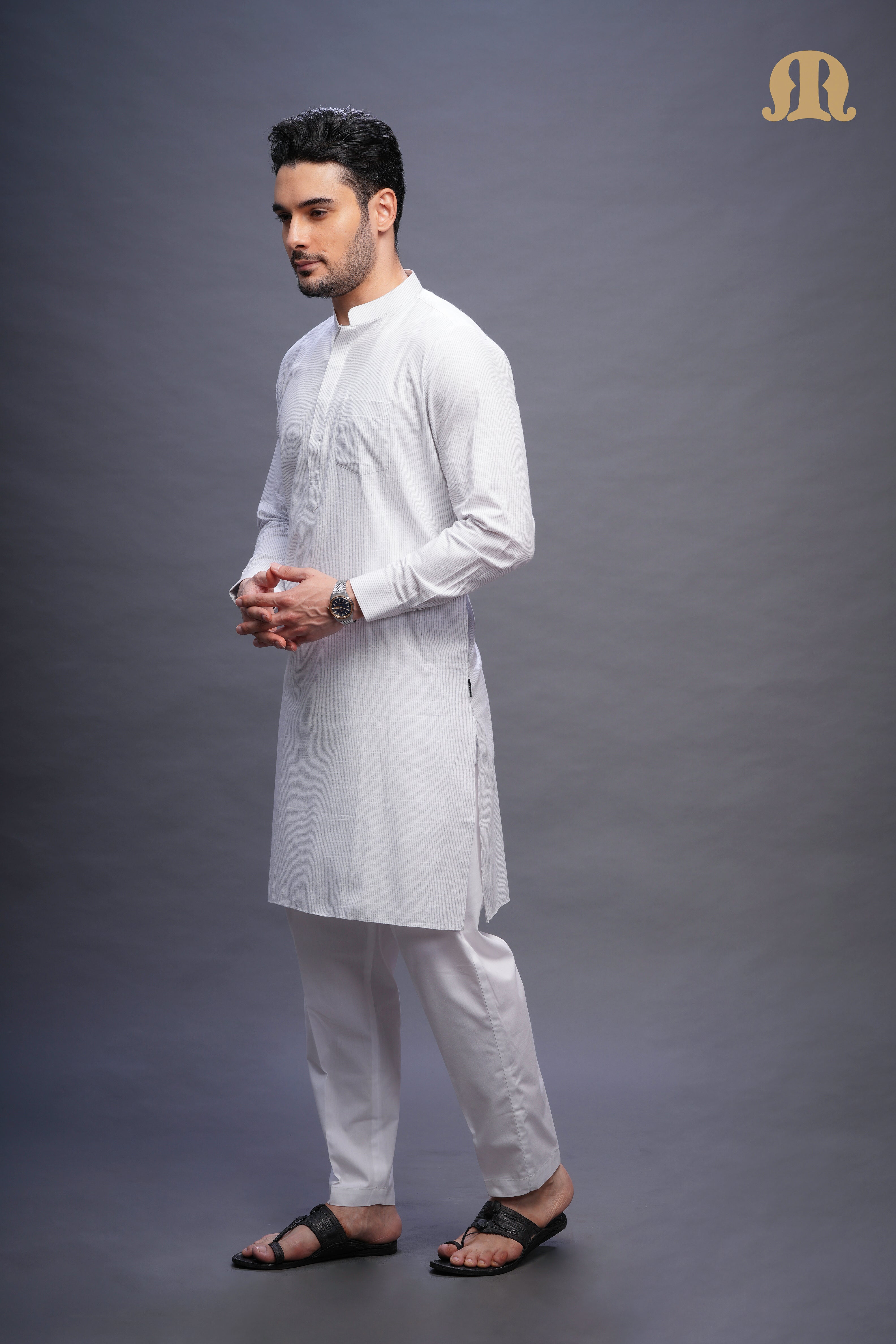 Revive classic style with our Rusal Stripe Kurta, featuring timeless stripes on cotton. Ideal for confident men seeking elegance and comfort.