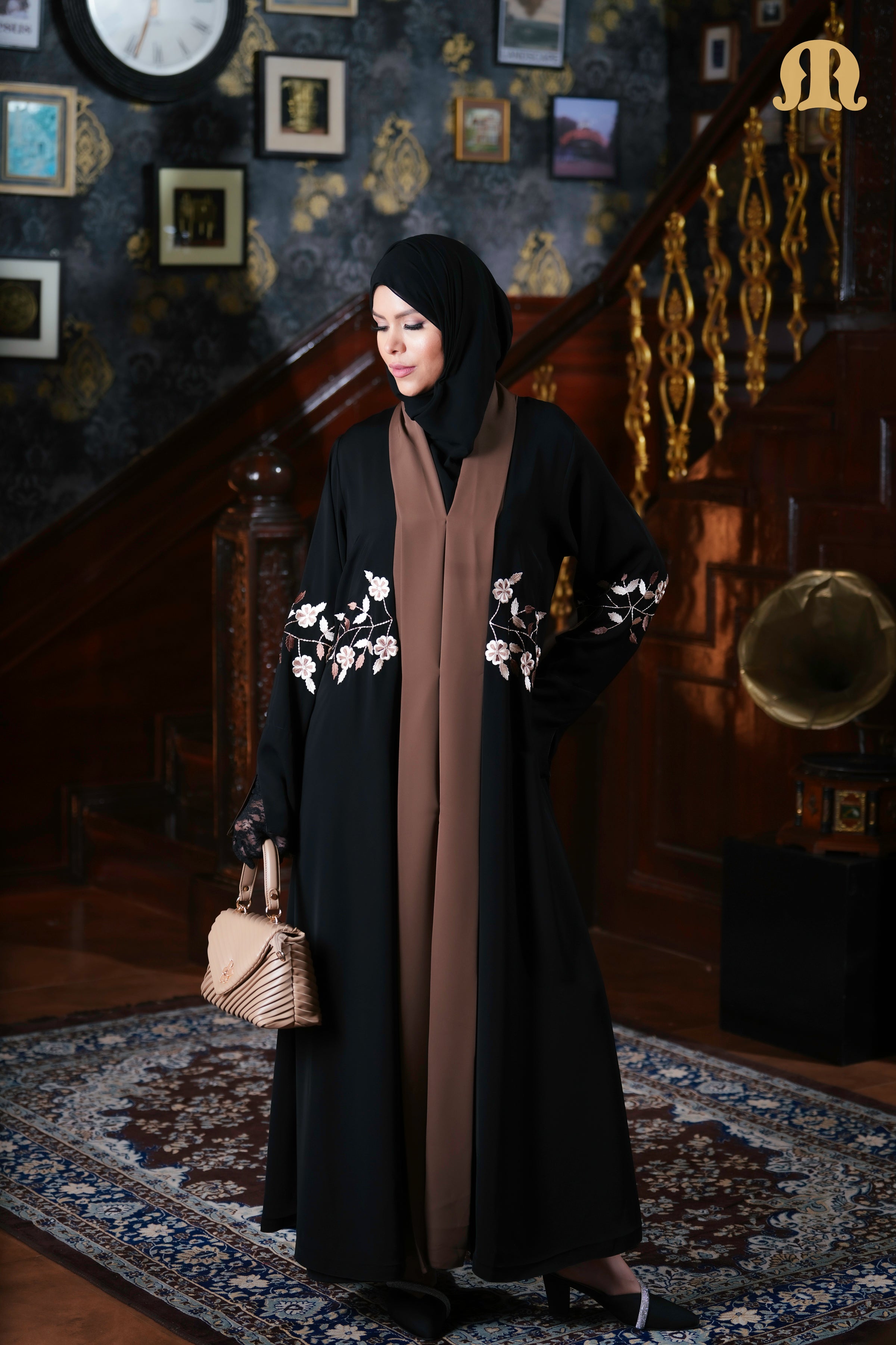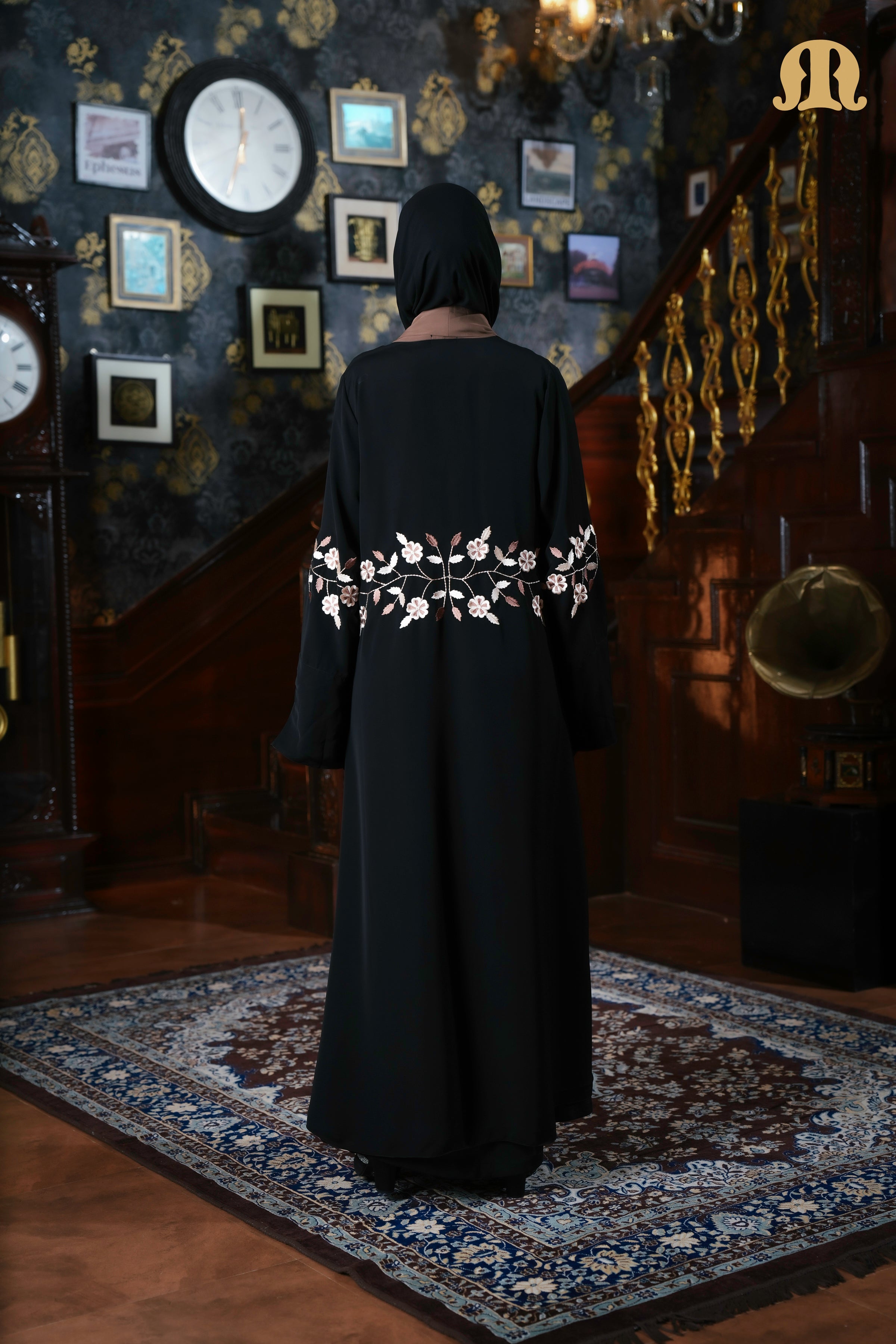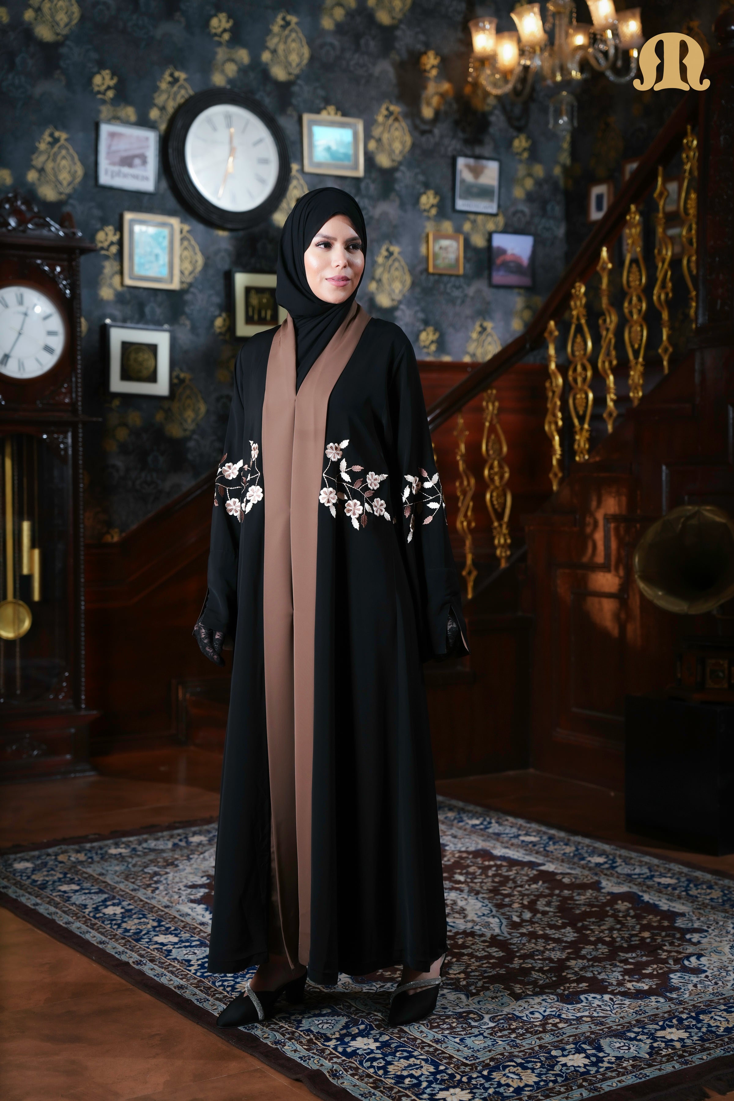 Step into timeless sophistication with the Saalis Abaya, a perfect blend of luxury, comfort, and modest fashion. Crafted from high-quality Nida fabric, this elegant black abaya features a camel brown shawl flap panel adorned with beautiful floral embroidery, creating a stunning contrast that captures attention effortlessly.